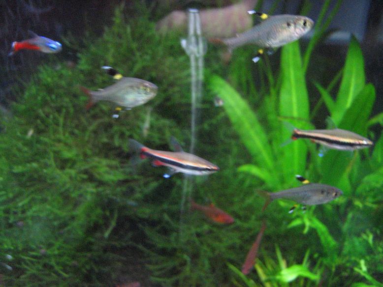 大量にいるのがボララスマキュラータで、その中にディープレットホタルテトラが混ざってる感じです。