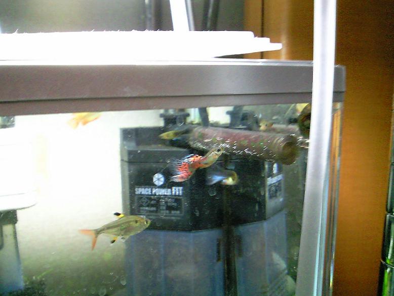 問題の60センチ水槽ですが上部式フィルターを多少改造して濾過面積は増量してあります。