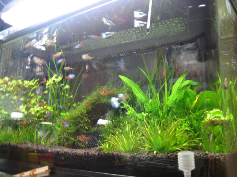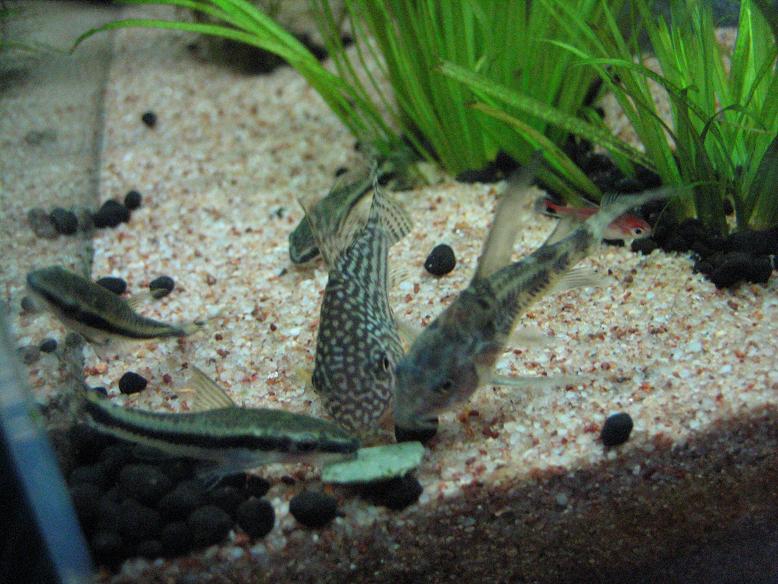 メインの突っついてる連中は変わらず後ろにディープレットホタルテトラが遊びに来てます!!