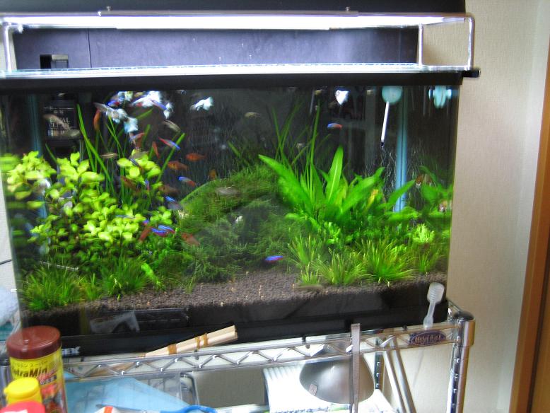 最近レイアウトをいじろうかな~と考えながらもいいレイアウトが浮かばないのでそのまま放置している60センチ水槽ですが、久々に全景をとってみることにしました~!