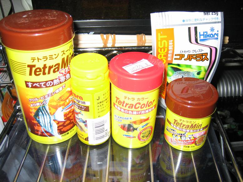 昔飼っていた時に使っていた&知名度が高いってことでテトラミンなどテトラ社が出している餌をメインにセラのは低層を泳ぐ魚にも餌がいきわたるようにと、安かったこともあり小粒状のものを買いました。