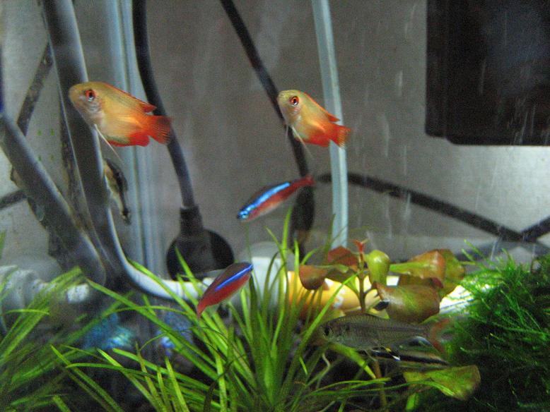 そして、ゴールデンハニーグラミーも2匹ほど。。赤の発色が強い子を選んで買いました(^^♪
