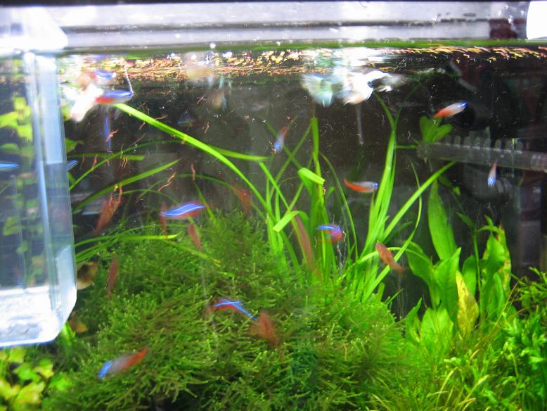 そして、水槽は広めなはずなのに最近よく稚魚用のブリードボックスの下に集まるテトラたち(^^♪
