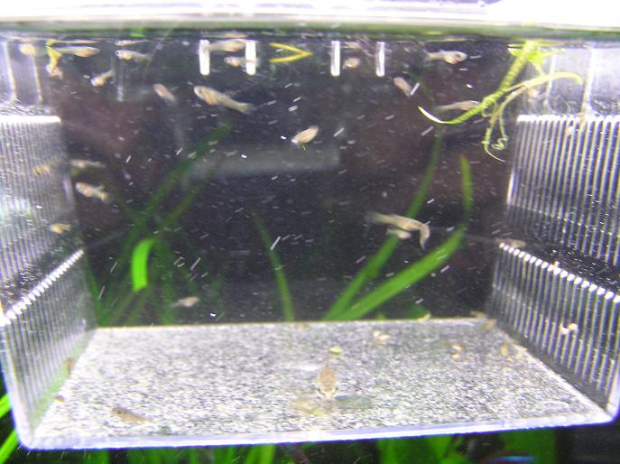 産卵ボックスに入れていたメスが稚魚を生んでました(^^ゞ