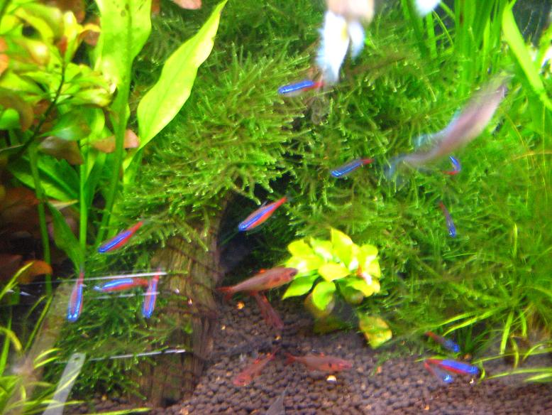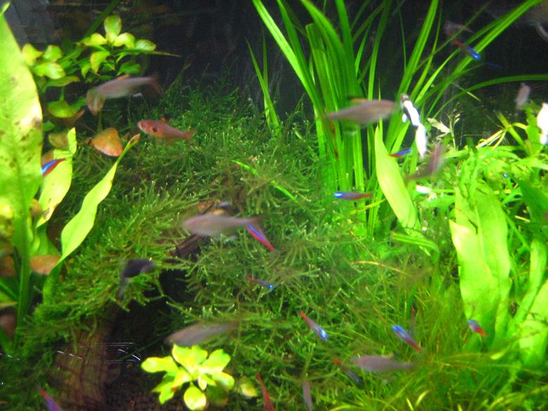 さて、話は変わって水槽中央にある流木×2のウィローモスがいい感じにもっさりしてきましたww
