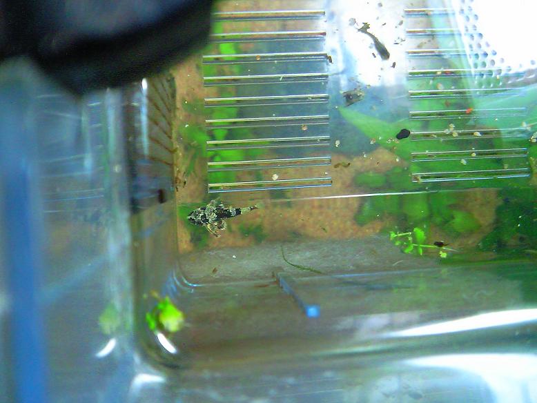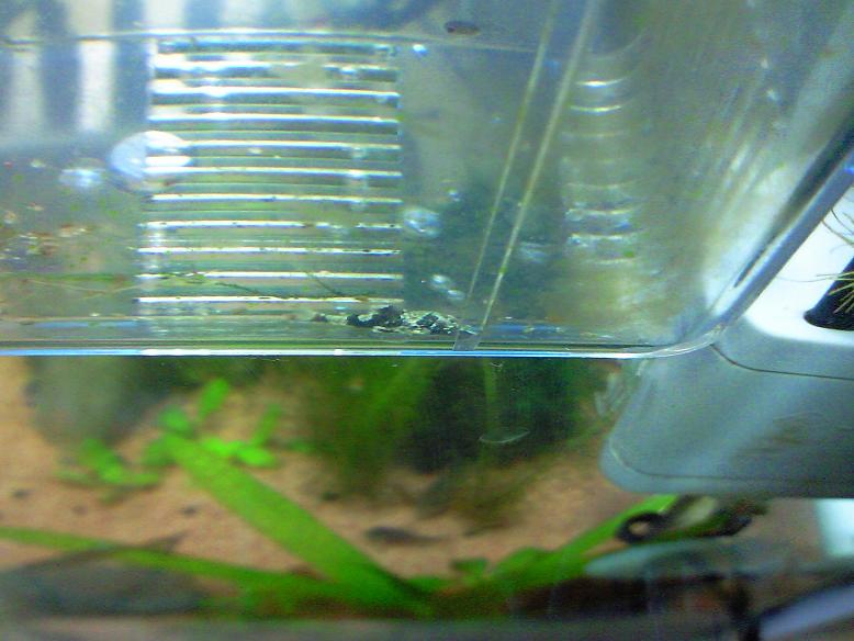 EHEIM水槽はそこそこ大きくグッピーやコリドラスなどがいるので餌付く前に餓死しないように稚魚が入っているブリードボックスの中で様子見です。